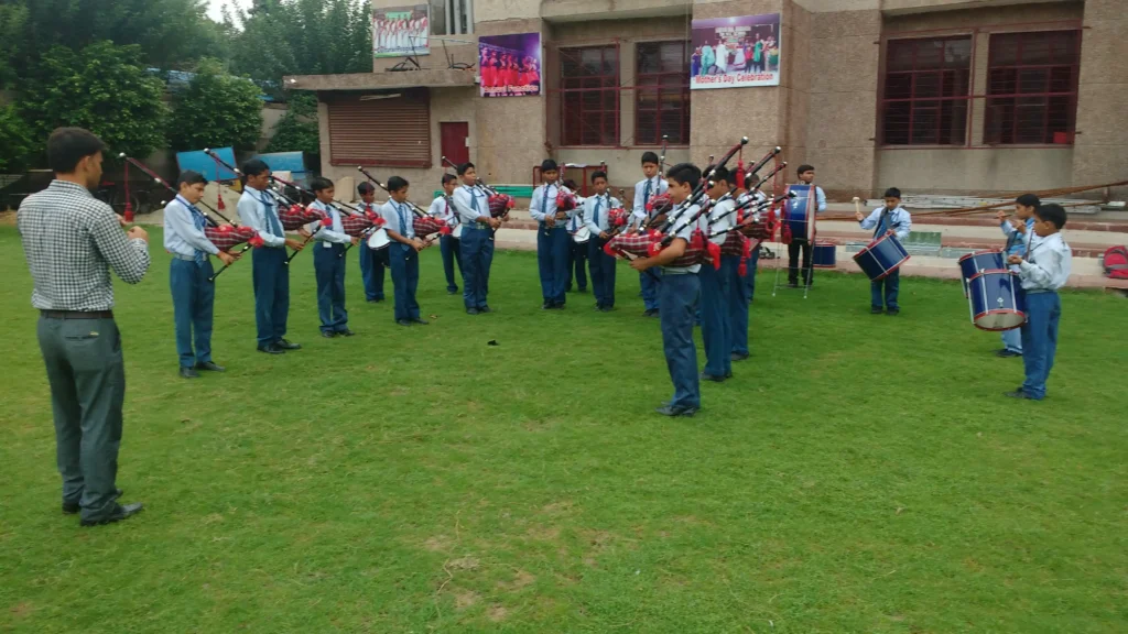 Fundamentals of Bagpipe, practice on Chanter and Bagpipe, Army marches, and marching coordination.